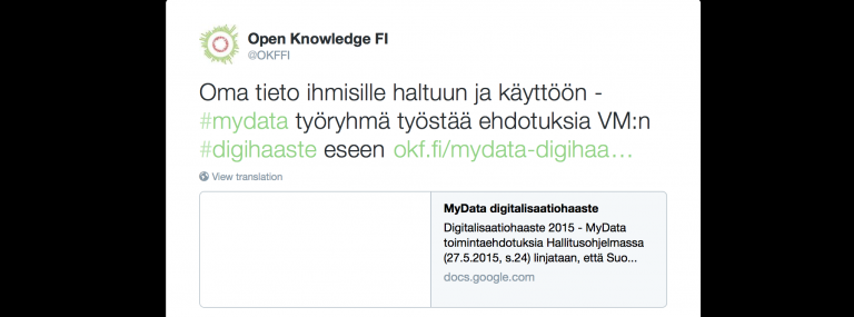 TIEDOTE 18.12.2015 Vuodesta 2012 saakka neuvottelupöydissä kiertänyt uusi yleinen tietosuoja-asetus yhdenmukaistaa EU:n digitaalisen sisämarkkinoiden pelisääntöjä tietosuojan osalta sekä kohentaa huomattavasti kuluttajien ja kansalaisten oikeusturvaa. Suomessa kehitettävä MyData-henkilötietomalli vastaa uuden lainsäädännön tiukentuviin vaatimuksiin. Yksilöiden oikeudet lisääntyvät Ihmisillä on tulevaisuudessa oikeus saada omat tiedot käyttöönsä digitaalisessa muodossa. Asetuksen mukaan digitaalisen suostumuksen antamisen ja peruuttamisen tulee olla yhtä […]